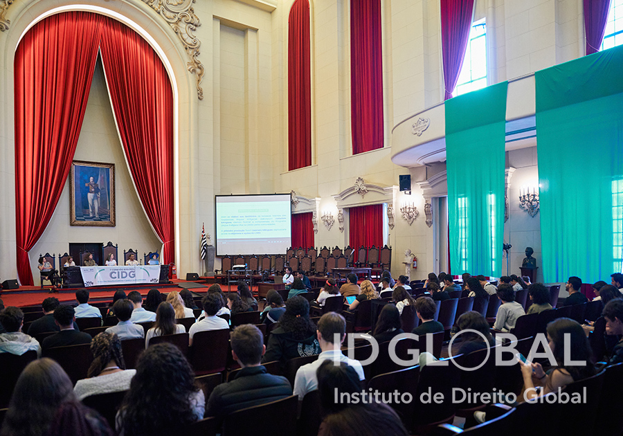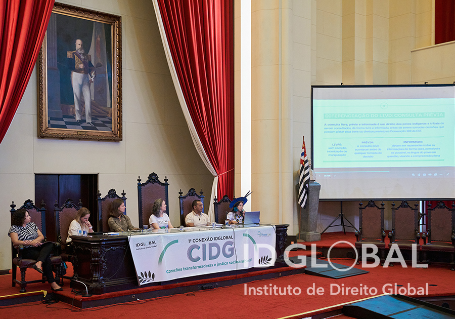 Mesa sobre o Língua Indígena Viva no 1º Conexão IDGlobal (CIDG), na Faculdade de Direito da Universidade de São Paulo, em junho de 2025: